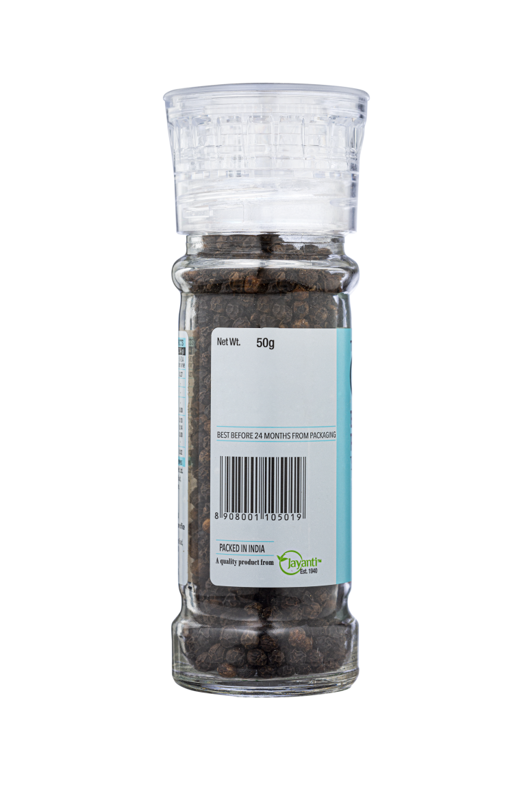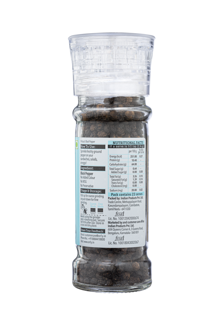 Black pepper corns, bold and rounded brings the distinctive taste of Malabar cuisine. Enjoy the superior aroma and peppery flavours of freshly ground spice using the in-built grinder.