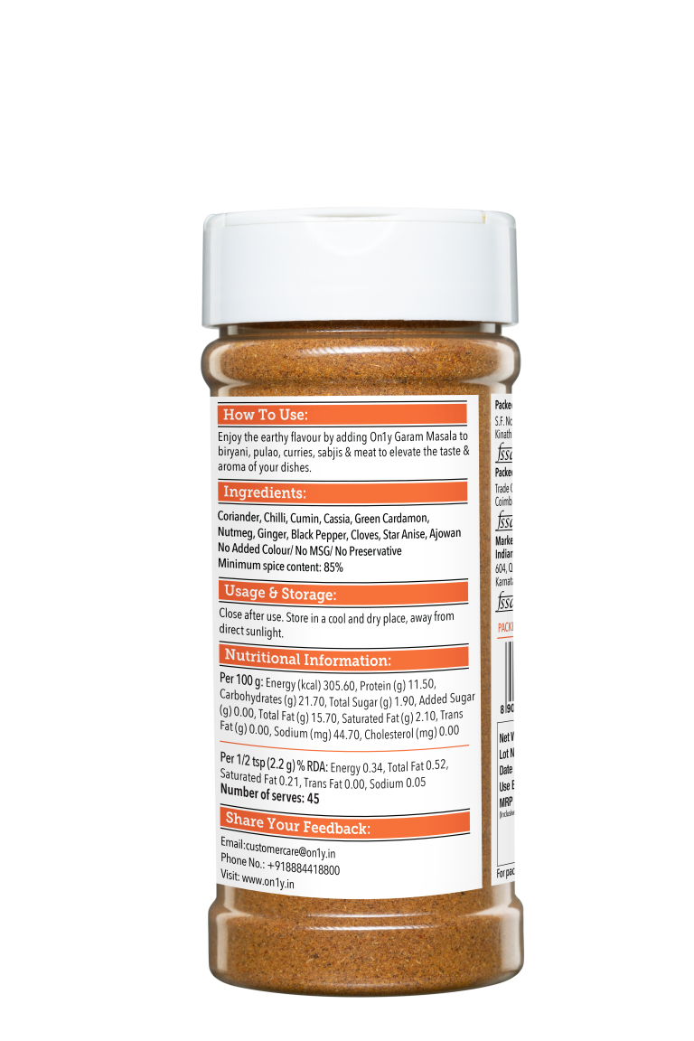 On1y Low Sodium Garam Masala is your go-to spice mix for adding warmth and depth to any dish. Expertly blended with traditional Indian spices, this version is crafted for those who cherish bold flavours and heart health, offering a delicious twist without excessive sodium.